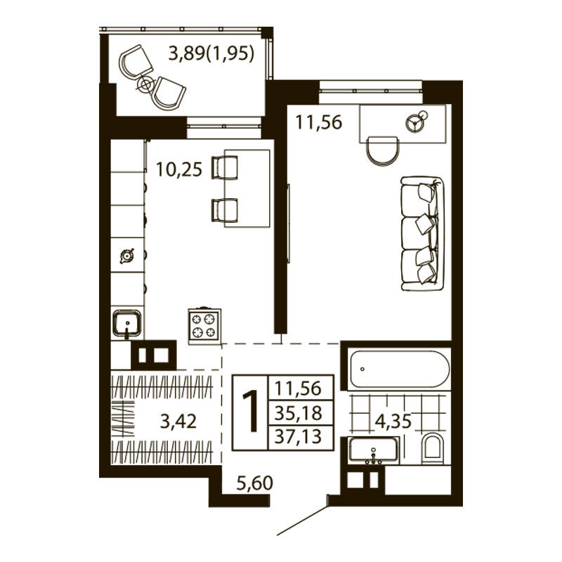 1-комн. квартира 36.4 м²