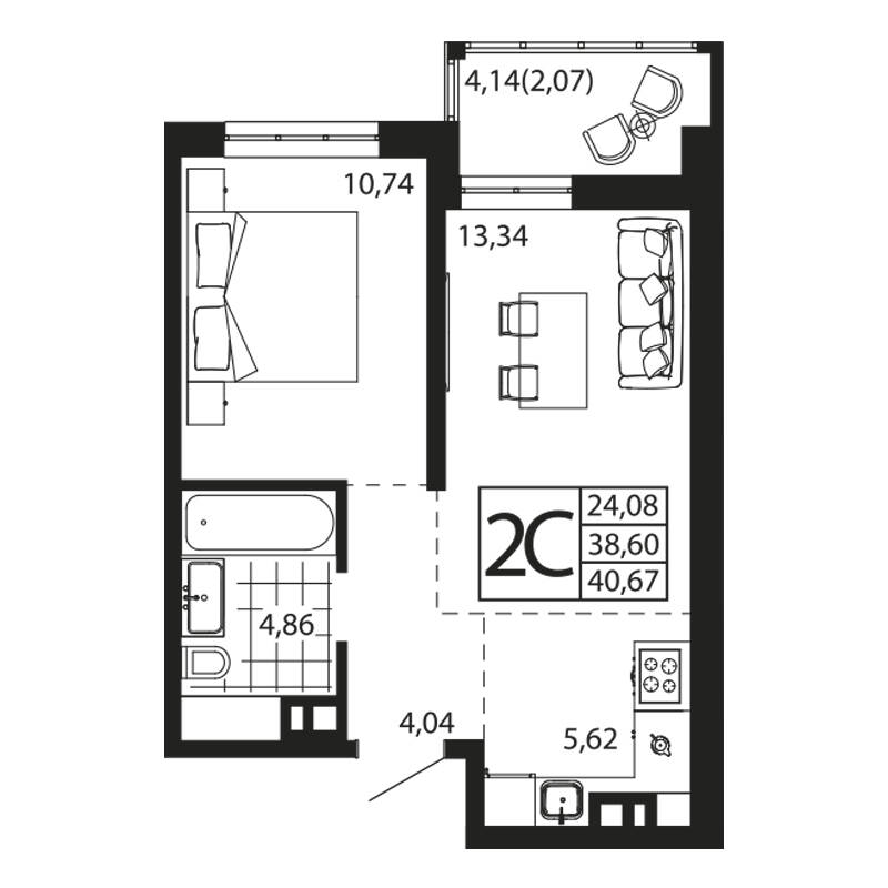 Евро 2-комн. квартира 40.62 м²