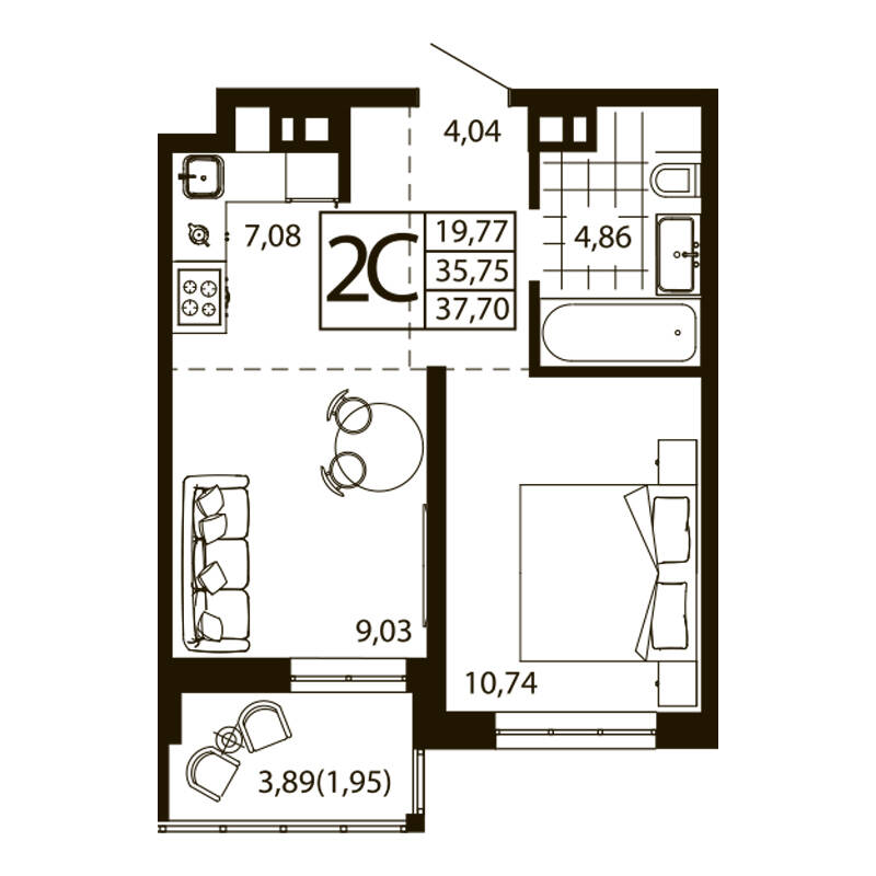 Евро 2-комн. квартира 36.96 м²