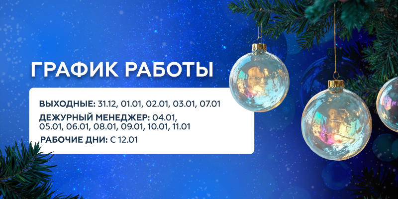 Салатники с оливье, марафон новогодних фильмов и детский смех с горок — то самое чувство начала года. Мы тоже живём в этом ритме, но остаёмся на связи: дежурные дни и телефон — для ваших вопросов. Ниже — график на праздники.